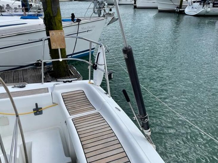 - GRP deck with teak on seats in cockpit and on stern sugar scoop