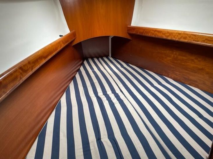 Deep fin keel, 3 spreader mast with new standing rigging 2021, full width main sheet traveller, new B&G electronics 2021, new seacocks, new sprayhood 2021, 8 berths in 3 cabins plus saloon. Volvo MD2040 saildrive, Main sail, furling Genoa and Cursing chute, storm jib, all in excellent condition. Substantial refit in 2021. Sails serviced and laundered by Kemps in 2024