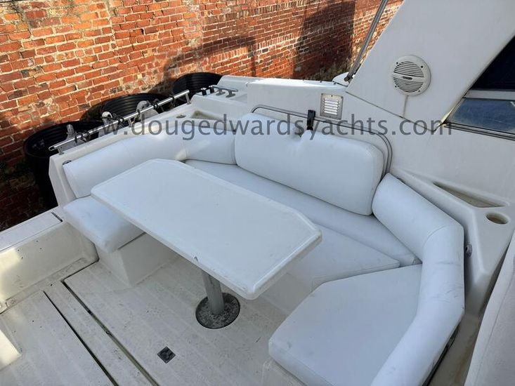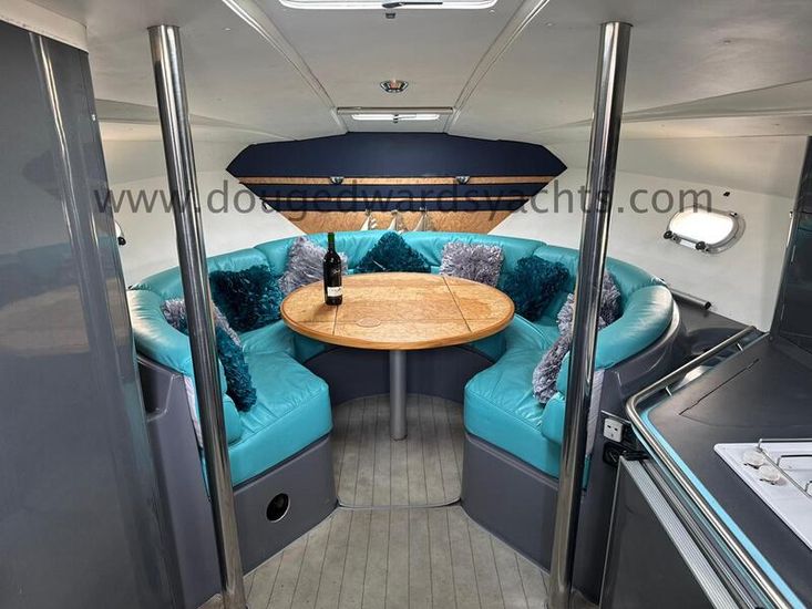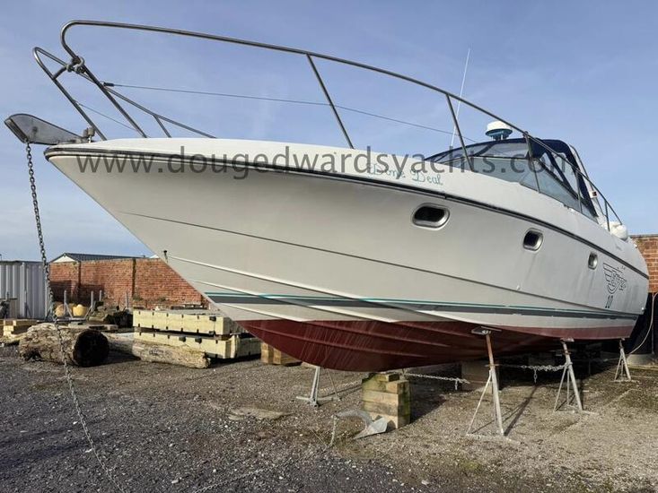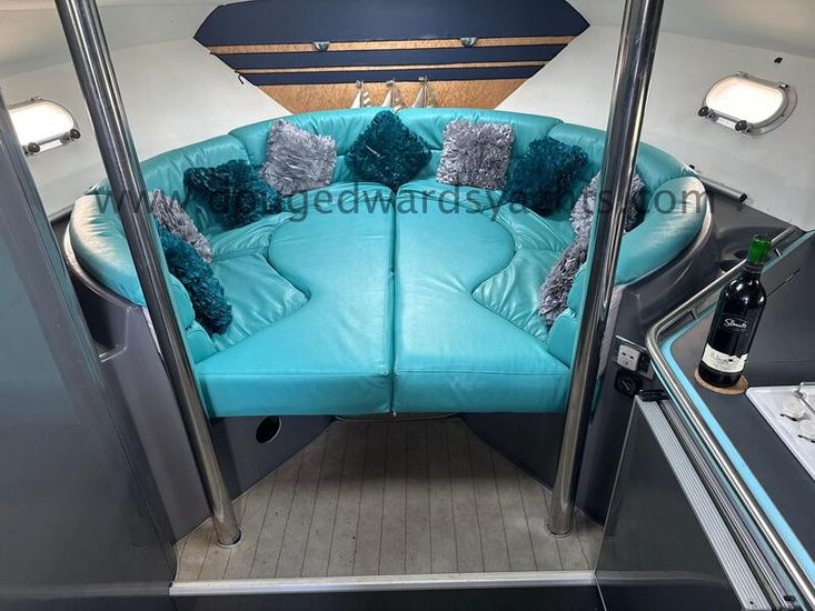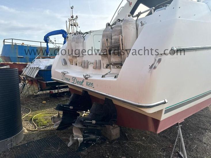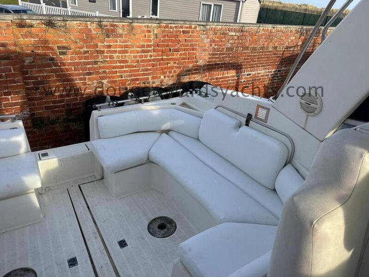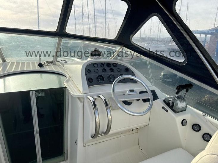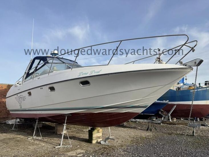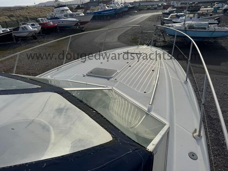 Beneteau Flyer 10 (1990) Sports Cruiser. 2x Mercruiser 330hp 7.4litre V8 engines. Electric anchor windlass. Six berths (Double berth forward saloon/ twin berth aft cabins). Hot/ cold water system. Full galley. Furuno Chartplotter. Furuno radar. Autohelm depth and speed. Simrad 8110 VHF radio. Lying North Wales, UK.