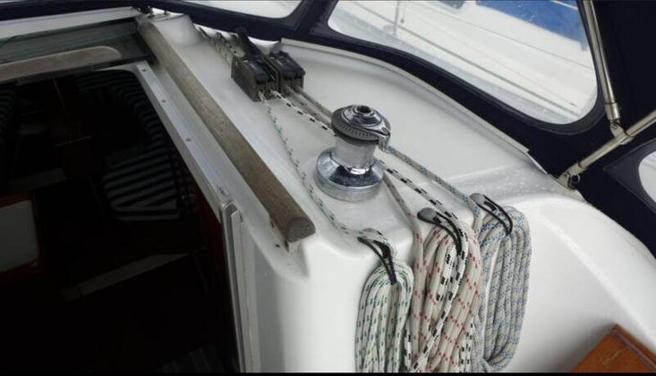 Located behind the companionway steps is an original Volvo MD2030 three cylinder 29HP Diesel engine. Electric start. Freshwater cooled. Shaft drive to a 3 bladed Darglow Featherstream propeller with rope cutter.