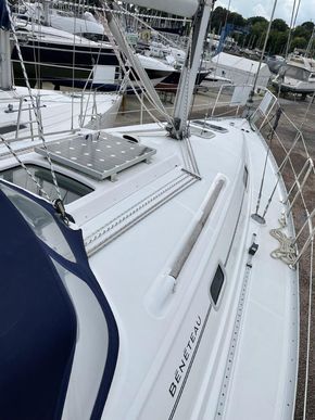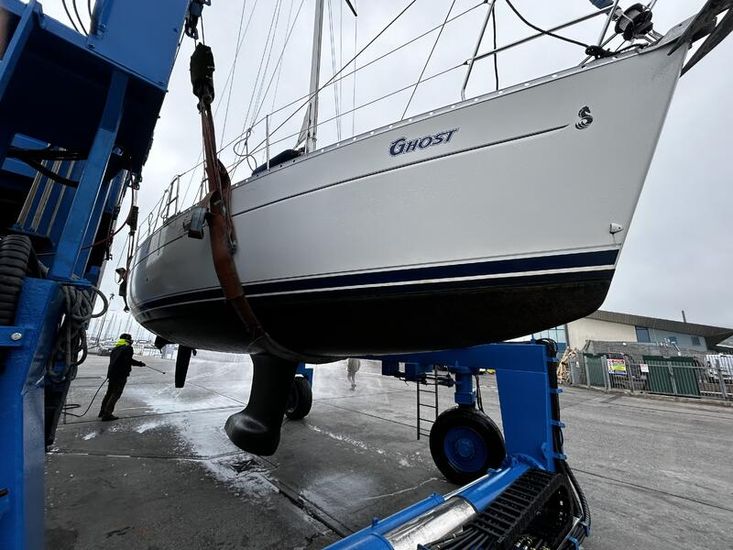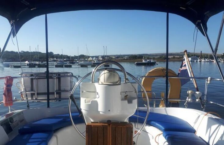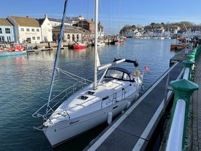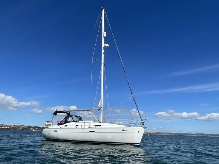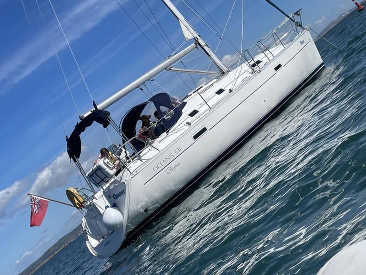 'Ghost', a real head turner Beneteau Oceanis 331 Clipper with standard fin (bulb) keel, wheel steering, and spade rudder has spacious accommodation and a good inventory including sprayhood, full canopy bimini, solar panel, full suite of Raymarine navigation equipment to include radar, hot water, anchor windlass and cabin heating. A very cruiser friendly furling main system refreshed in 2025. Lying Weymouth Marina, Dorset.