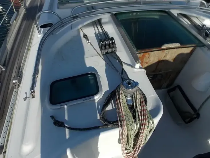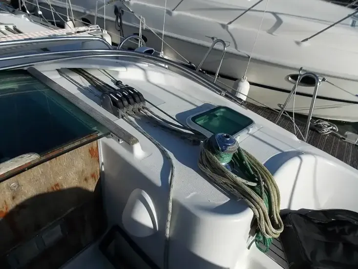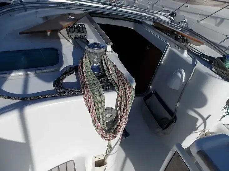Beneteau Oceanis 411 Celebration for sale. This is a great opportunity to obtain a lovely tidy well maintained and equipped example of a popular cruising yacht design. She includes side rail gates, bow thruster, power winch, Eberspacher central heating, anchor windlass, heads fore (with holding tank) and aft with electric pump toilets and wall mounted tv.